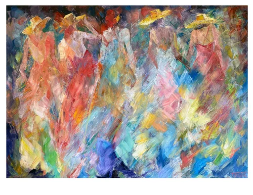 A fun series of paintings inspired by the idea of dressing up and attending social events. We could all use a little more of that given the past few years we’ve had!